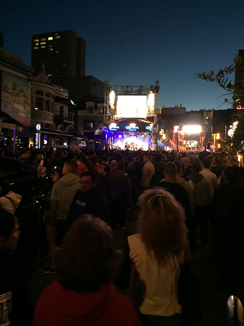 Street party in downtown Montreal. The nighttime scene was like this all weekend.
